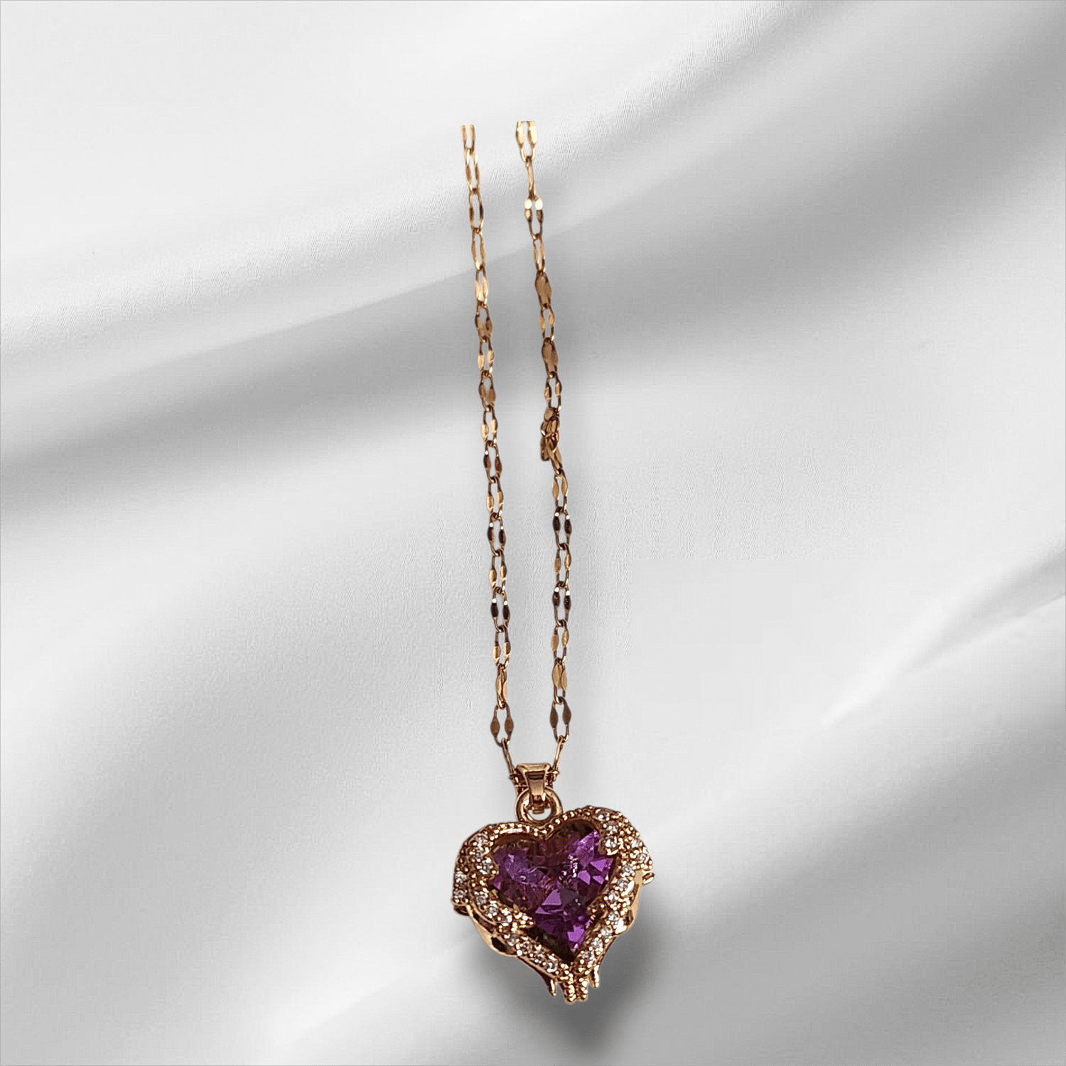 Gold necklace with purple heart and crystal embellishment. Demure design, great paired with purple heart earrings. Adjustable. Gift with purchase